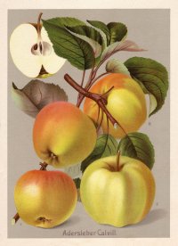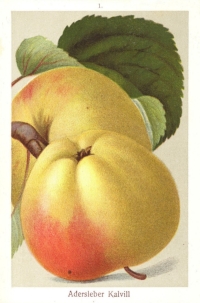 Geschichte:Aus dem Klostergut Adersleben wurden nach stattgefundener Befruchtung eines Kalvillhochstammes mit dem Gravensteiner Ende der dreißiger Jahre des vorigen Jahrhunderts drei Sämlinge gezogen, die als Adersleber Kalvillsämlinge Nr. I, II und III bezeichnet wurden. Die Verbreitung dieser Sämlinge erfolgte erst gegen Ende des Jahrhunderts im größeren Maße und hat von da ab rasch zugenommen. Sie gehen heute unter drei Namen: Nr. I als Lichthardts Apfel, Nr. II als Aderleber Kalvill und Nr. III als Amtsrat Meyer. Nr. II ist am meisten bekannt geworden. Von den Baumschulen wird aber Nr. III ebenfalls oftmals als Adersleber Kalvill geliefert.