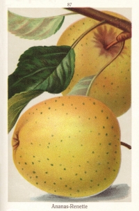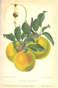 Reifezeit:Die Früchte sollen spät, Mitte Oktober gepflückt werden, dann behalten sie auf dem Lager ihre Frische und Würze bis März. Dieser Apfel zählt zu den köstlichsten Tafelfrüchten und ist auf dem Markt sehr gesucht.