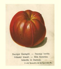 Geschichte:Über den Ursprung dieses alten, weitverbreitesten Apfels ist Genaues nicht mehr bekannt. Er dürfte aus Holland stammen, da er zuerst von dem Holländer H. Knoop 1760 beschrieben wurde. Er trägt noch eine Anzahl deutscher Namen und wurde von Dies unter sieben verschiedenen Namen beschrieben.