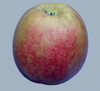 Beschreibung:Die Frucht gleicht äußerliche bis auf die Färbung vollständig der Urform, ist 80 mm breit und 70 – 72 mm hoch, flachkugelförmig und mittelbauchig. Kelch geschlossen, mit grünlichen, aufrechten Blättchen. Einsenkung tief, eng, mit flachen, über die Wölbung laufenden Falten. Stiel stark, holzig, in tiefer, enger, stark berosteter Höhle. Schale etwas rau und glänzend, Grundfarbe gelb, bedeckt mit karmesinroter bis ziegelroter Deckfarbe, in der noch Streifen wahrnehmbar sind; Rost ist wenig vorhanden. Auf ungünstigem Standort fehlen diese farbigen Schattierungen. Fleisch hellgelblich oder gelblichweiß oder grünlichgelb, saftreich, von vorzüglichem, renettenartigem Geschmack. Bis November noch ziemlich fest, später schön mürbe. Kernhaus etwas hohlachsig, Fächer geräumig, Samen mittelgroß, wenig gespitzt, oft unvollkommen.